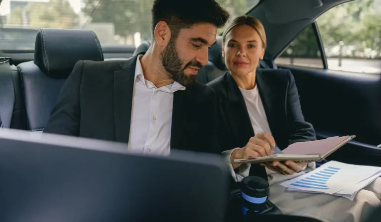 To arrange corporate travel, you simply share itinerary details (pickup locations, times, passenger names, and vehicle preferences), then receive a confirmation so every ride is booked and ready before the workday begins.